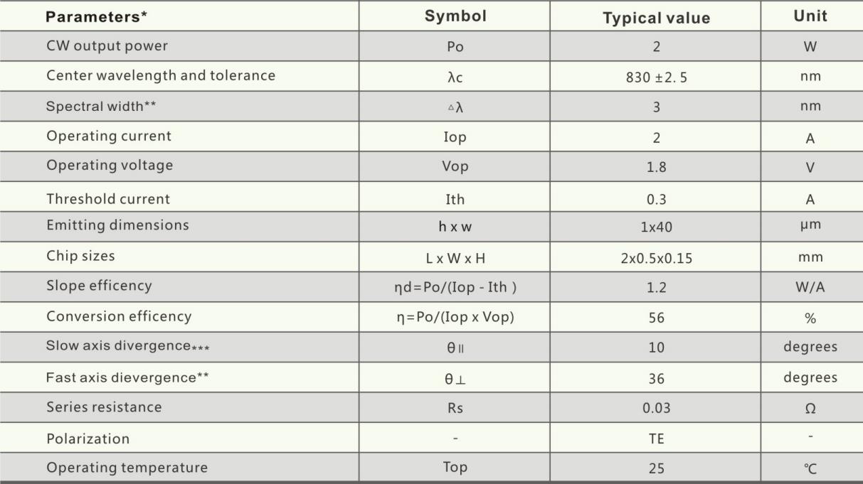 上一页:880nm 10W半导体激光单管芯片(190μm)